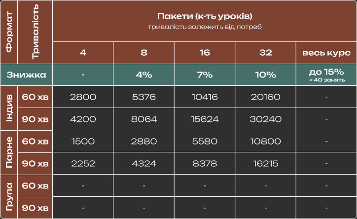 Зручний формат: індивідуальні заняття або заняття в парі в режимі реального часу через Zoom – вибір залишається за вами.